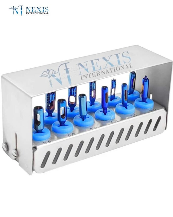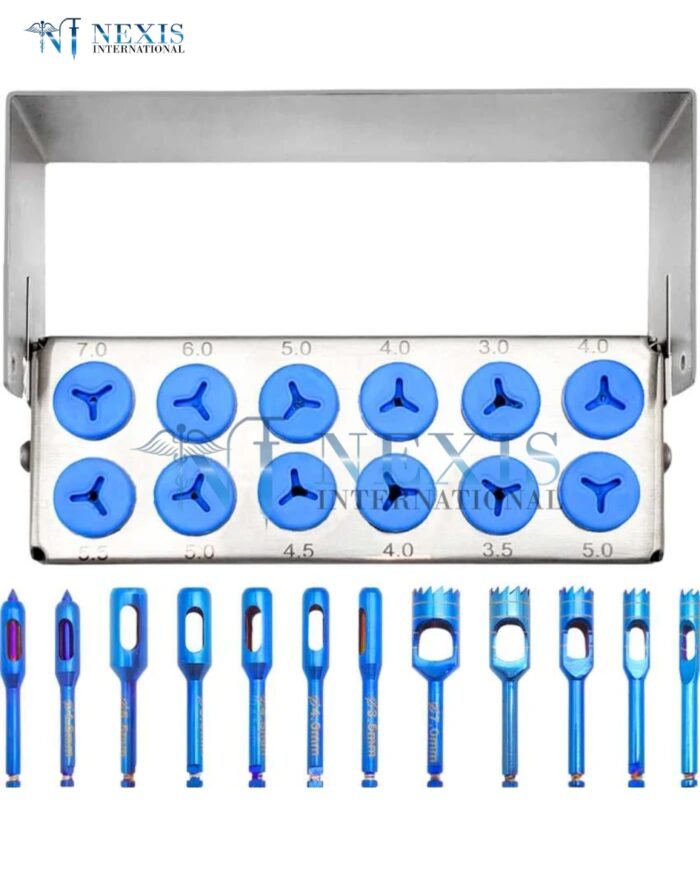 Dental Trephine & Tissue Punch Kit – 5 Trephines (3–7 mm) + 7 Tissue Punches (3.5–5.5 mm)